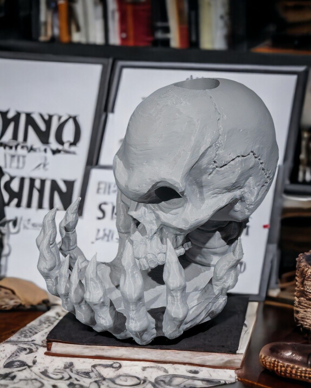 Transform your space with The Phantom Backflow Burner. This unique burner features a haunting skull and hand design, perfect for gothic lovers. Simply place your favorite incense cone on the burner and watch as the smoke cascades down, creating a mesmerizing and enchanting atmosphere.
